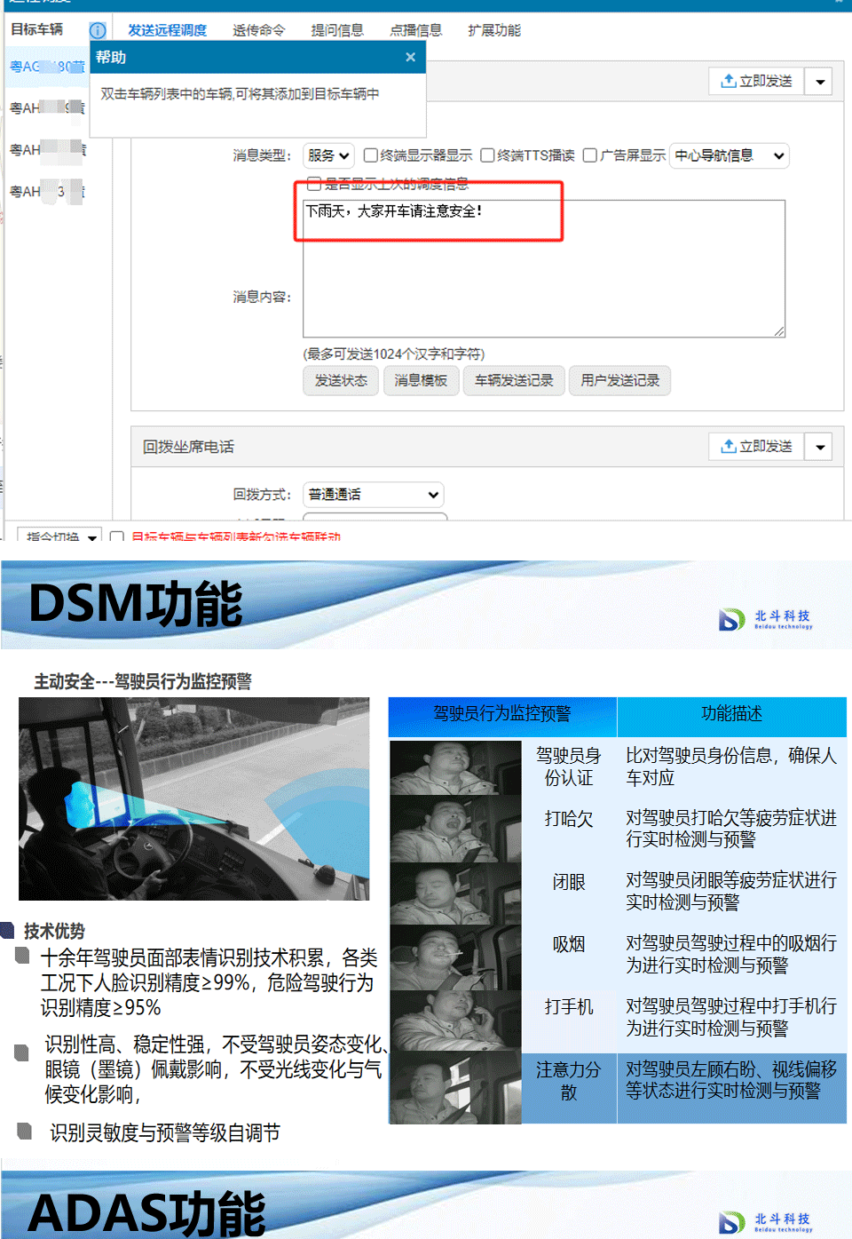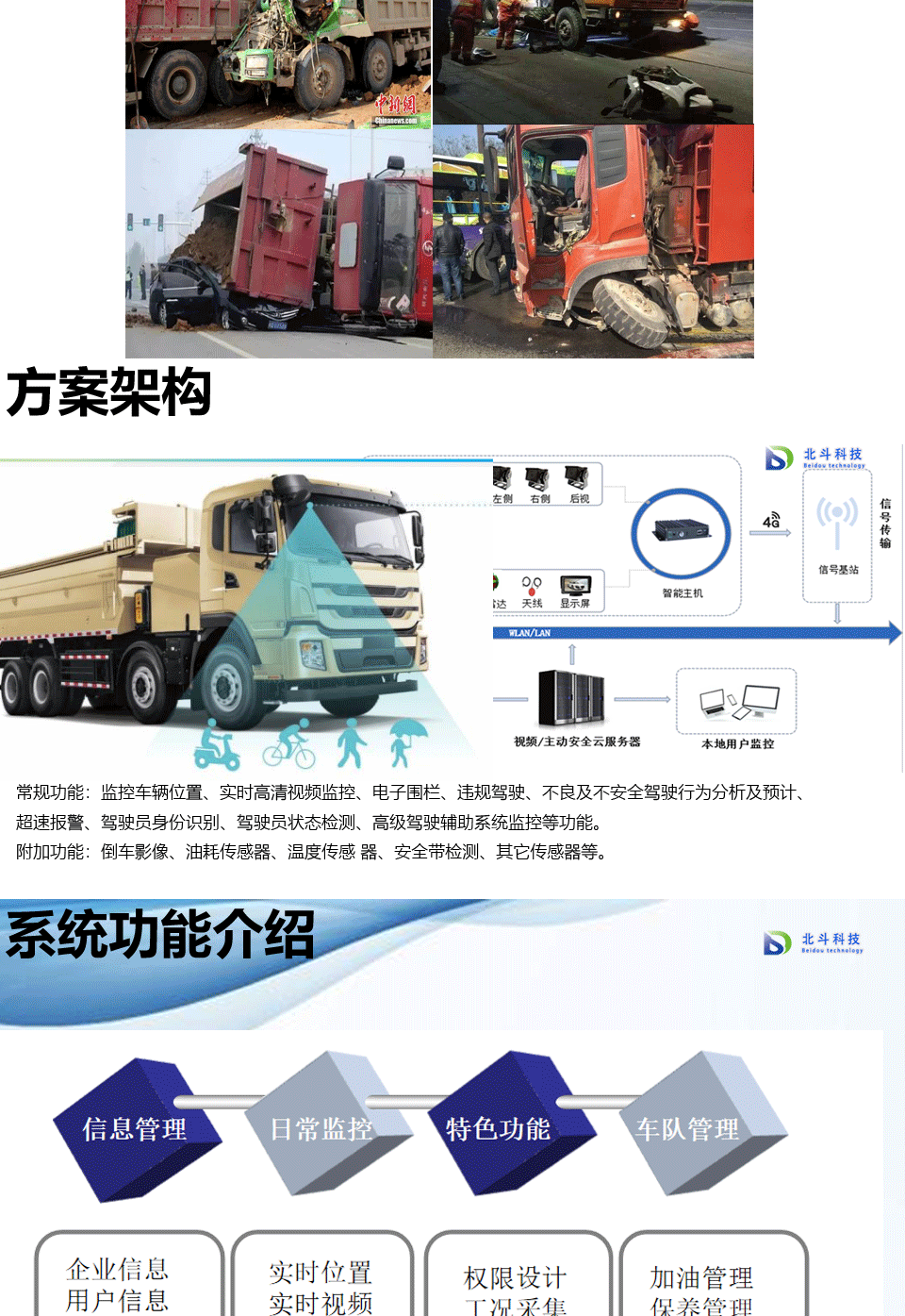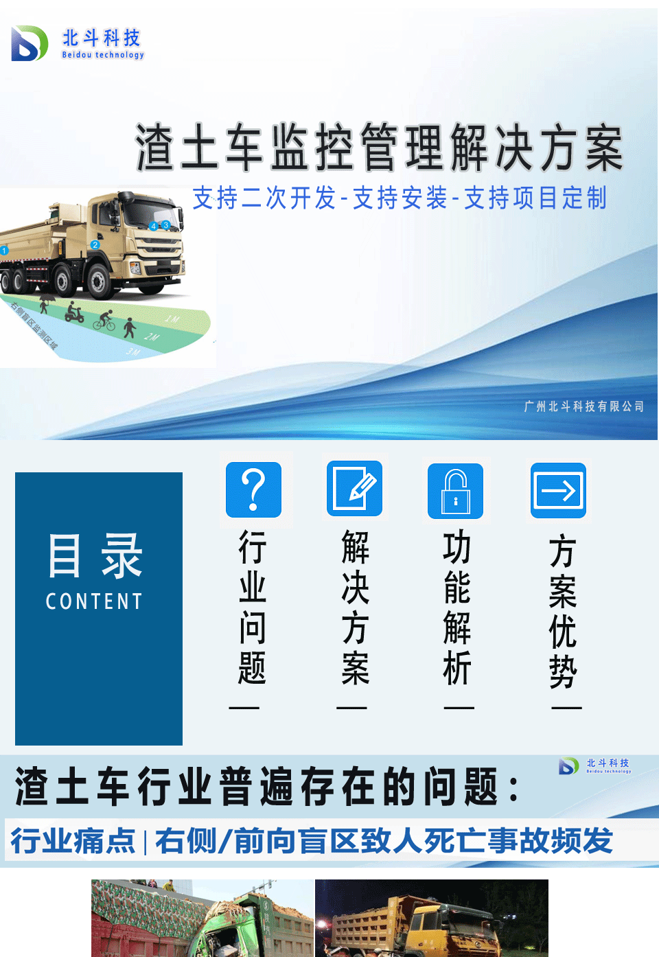 广州北斗建立关于渣土车辆应用的解决方案,实现了4G视频解决方案,提高驾驶安全,运输车辆转向雷达安装服务。 同时可以防疲劳驾驶面部识别,ADAS轨迹偏移和前车预警。增加渣土车行驶安全。